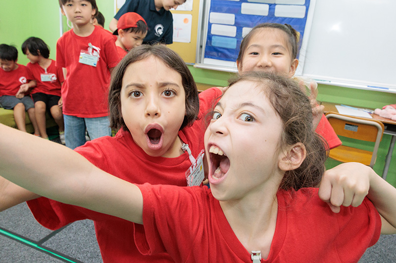 サタデースクールでは、当校で通常行われている イマージョン式授業を基礎にしたサタデースクール用の特別プログラムで、授業をすすめて参ります。授業はリラックスした楽しいムードの中、全て英語で行われます。英語、社会、理科、算数(数学)、コンピューター、スポーツなどを通して、教師やクラスメートとのコミュニケーションを軸に、会話力習得に重点を置いて様々なことを学んでいきます。