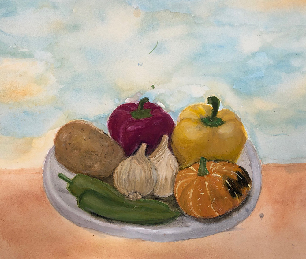 先学期、11年生の生徒たちは新しい技法に挑戦し、創造力をさらに高めました。パステルや水彩を使って色を重ねたり、ぼかしたりする練習を重ね、さまざまな表現方法を学びました。また、印象派の画家ルノワールの作品や色彩理論を学び、画家がどのように背景を落ち着いた色調で表現するかについて理解を深めました。学んだことを実践するために、果物をお皿に並べ、自分自身で静物画の構図をデザイン。完成した作品はどれも素晴らしく、皆の芸術的な才能が存分に発揮されました!(ヒル先生)