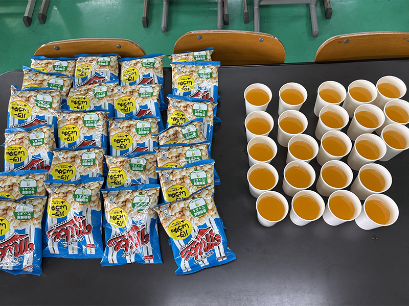 お祝いの最後には、みんなでポップコーンとジュースを楽しみながら映画を観ました。100日間の学びと友情を振り返る、楽しくて思い出に残るひとときとなりました。