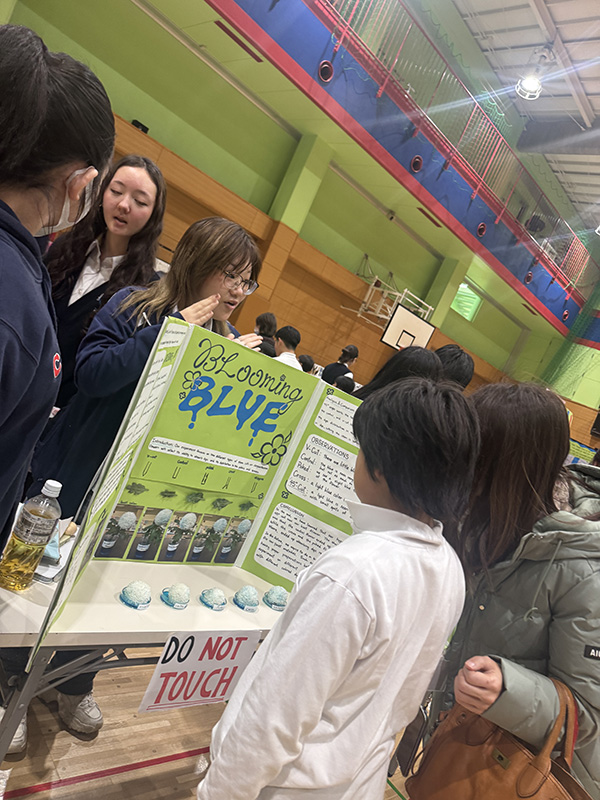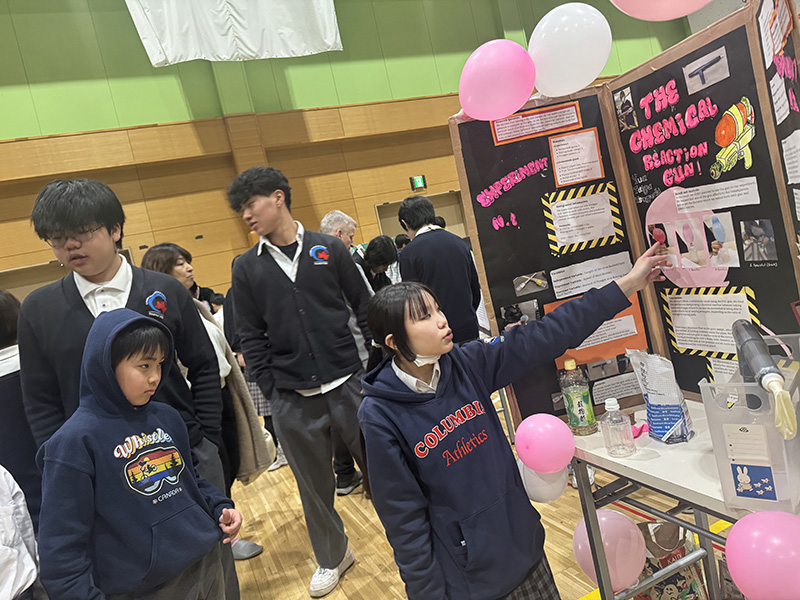 2月6日(金)、ビッグジムにてサイエンスフェアが行われました。 7年生から10年生が参加し、賞を目指して競い合いました。今年のテーマは「変数の検証(いろいろな条件を変えると、結果がどう変わるかを調べること)」。様々な分野での実験が行われましたが、どれも本当にレベルが高く、審査員を大いに悩ませました。